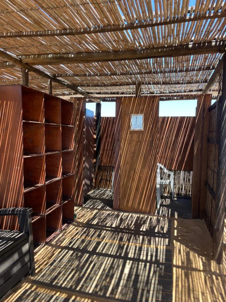 - Na místě je sprcha se sladkou vodou, nicméně není dovoleno používání mýdel ani šamponů (mýdlová voda pak stíká do nádrží z vodou, kde je moře nebo se těží sůl a tím se to znečišťuje)